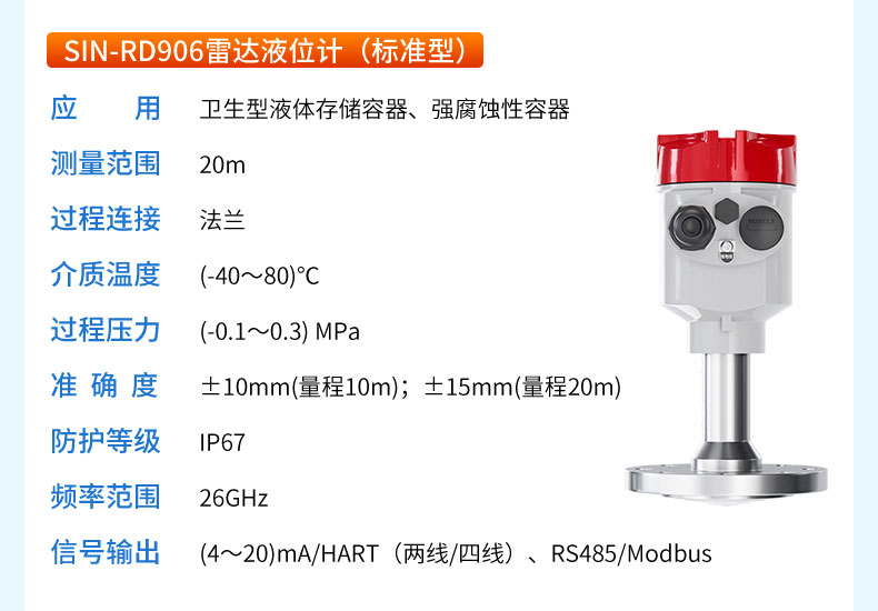 您的位置: 首頁 > 26G高頻雷達物位計 → 聯測儀表SIN-RD904雷達料位計適用于強粉塵、易結晶